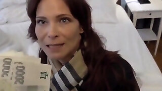 Bony babe agrees to deepthroat a stranger for a cash POV