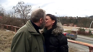 Super-sexy Czech pornstar gets fucked by a horny aged chap outdoors