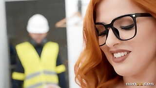 Redhead Cougar facialized by nasty big-dicked worker after steaming XXX