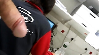 Vendedora gatinha olhando meu volume gostou de ver full salute
