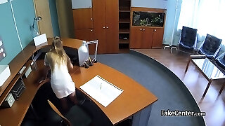 Lusty blond haired nurse sucks big penis of good-sized sick boy