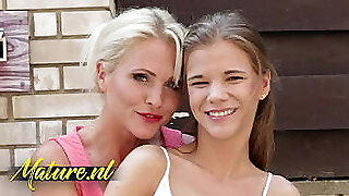 MatureNL Lesbian MILF Seduces Petite Teen and Fucks her Pussy with Fuck Stick