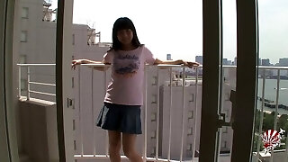 Adorable and petite Asian tranny stroking her cock and jizzing