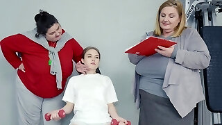 Three Petite Teens in First Time Lesbian after Fitness Lesson