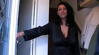 Young neighbor spies on leggy dark skinned Cougar fingering herself
