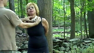 Seductive blonde bitch with great rack gets nailed well in the forest