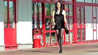 Crossdresser Sissy in very short Sundress outside