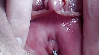 Extreme closeup masturbation with huge clitoris wet ejaculation