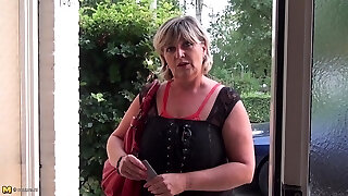 Mature female toys herself and gets fucked by two Black fellows