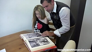 Happy grey haired older man finally lures fetching Layla London for hot fuck