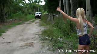 Puny blonde teen brutally fucked and facialized in a van