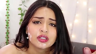 Cute teen get facial after sucking and riding rock hard cock live