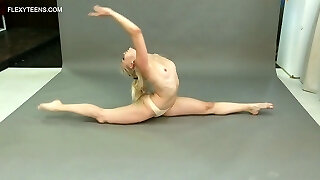 Skinny gymnast Anna Netrebko does the splits and demonstrates yummy teen cootchie