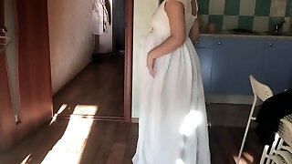Pregnant and kinky housewife wiggles her booty and lovely tits