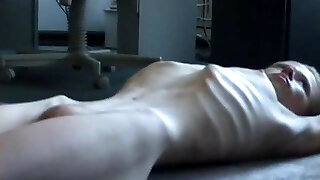 Skinny Oriental allows masseur to roam her naked body