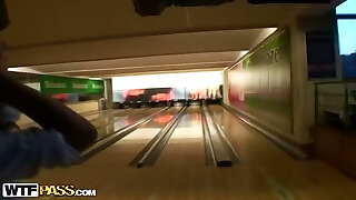 Angel Wicky deep throats a cock in the rest room and takes it into her cunt