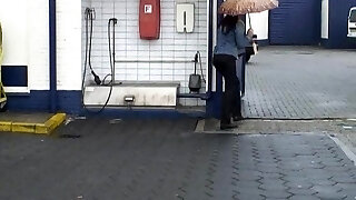 Japanese ho pees in public toilet