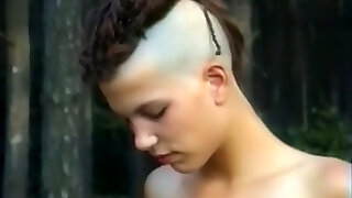Skinny and tall punk girl with 2 horny men in the forest
